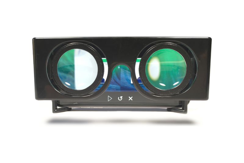 エルスウェアはプラスチック製のヘッドセットとiOS対応のアプリで構成されている。一見グーグルのVRヘッドセット「カードボード」に似ているが、決定的に違うのはカードボードがVR処理された動画しかVR表示できないのに対し、エルスウェアはどんな2D動画でもVR向けに変換できる点だ。