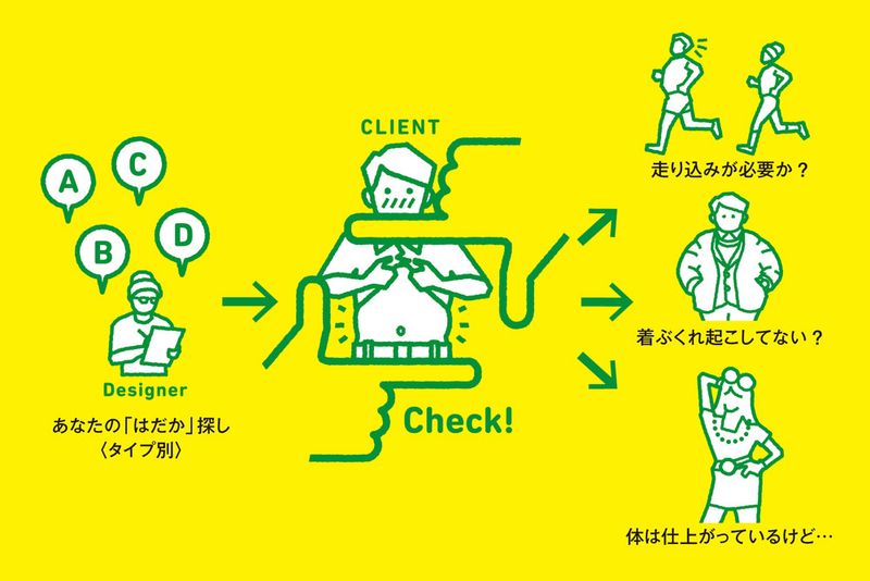 着ぶくれしていたけれど、実はいい体していますね。このはだかはまだ世に出せないので、トレーニングをしてみましょう。そんな声が聞こえてきて、初めてデザインをつくる第一歩が踏み出せます。
