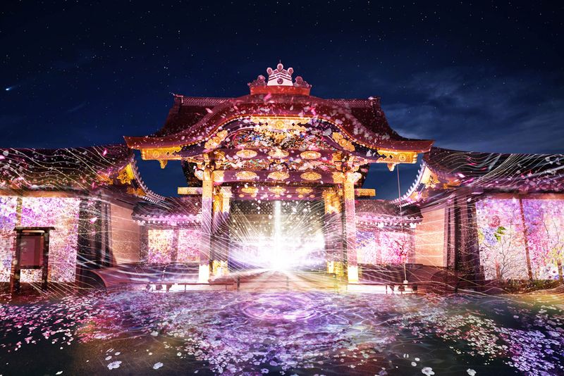 世界遺産・二条城では2018年、2019年と秋の紅葉シーズンで開催していたが、春に京都で開催するのは初めて。唐門など重要文化財でもある建造物、そして二条城に咲き誇る50種類もの「夜桜」とコラボレーションし、”桜”をテーマに新しいお花見体験を届けてくれるだろう。