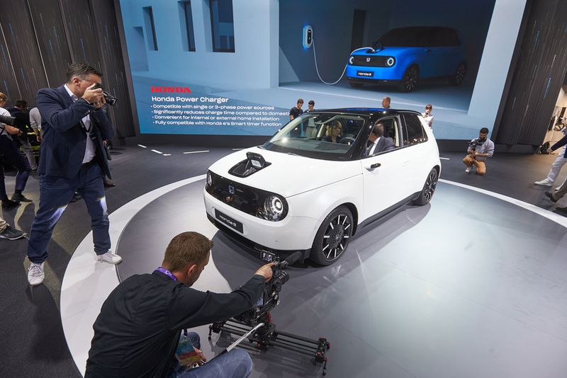 2019年3月のジュネーブモータ―ショーでプロトタイプを公開、そして9月のフランクフルトモーターショーでは工場で作られた量産車を正式に発表、という段階を踏んで世界に披露されたHonda eは、10月には東京モーターショーでも発表された。そのデザインは見ての通り意欲的なもの。