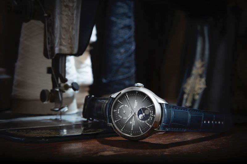 この「クリフトン ボーマティック デイデイト/ムーンフェイズ グレーグラデーション」には、月の満ち欠けを示すムーンフェイズ機能も搭載している。実用機構ではないが、優雅でロマンティックな魅力があり、それもまた作り手のこだわりを感じさせるポイントとなっている。