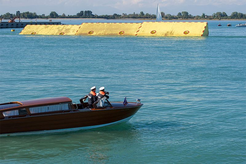 モーゼの名は「Modulo Sperimentale Elettromeccanico(実験的電気機械モジュール)」を短縮したもので、ベネチアの3つの潟の入り口に設置された一連の可動式水門からなる。海底に沈められた門を上げることで、高潮を防ぐ仕組みだ。構想のきっかけとなったのは、1966年に起きた194センチの歴史的高潮による大きな被害だった。