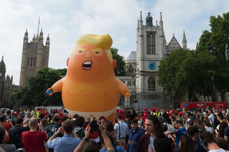 トランプを赤ん坊に見立てた全長約6メートルのトランプ・ベビーは、おむつ姿で、手にスマートフォンを握りしめて、わめきたてる表情をしている。2018年、クラウドファンディングで作られて以来、フランス、アイルランド、デンマーク、米国など世界各国を移動してきた。