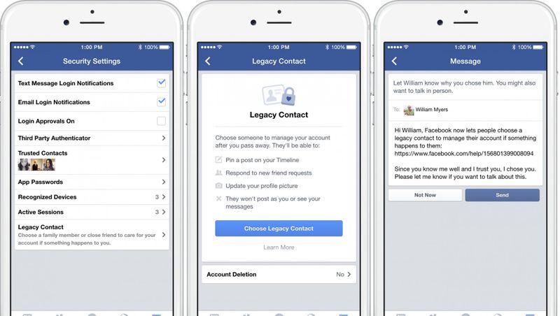 フェイスブックは今年2月Legacy Contact(追悼アカウント)機能をリリースした。この機能は、ユーザーが生前に指名した家族や友人が、お別れメッセージを投稿できるほか、プロフィール写真の変更や友達申請の承認、写真や投稿のダウンロードなどを行うことができる(ただし、プライベートなメッセージは対象外となっている)。