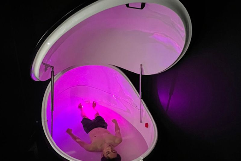 「アイソレーションタンク内の塩分濃度は40%以上で、中東にある塩湖、死海よりも濃いんです。そうすることで、何の負荷も感じずに体が浮かべられ、無重力のような解放感を味わうことができます」。