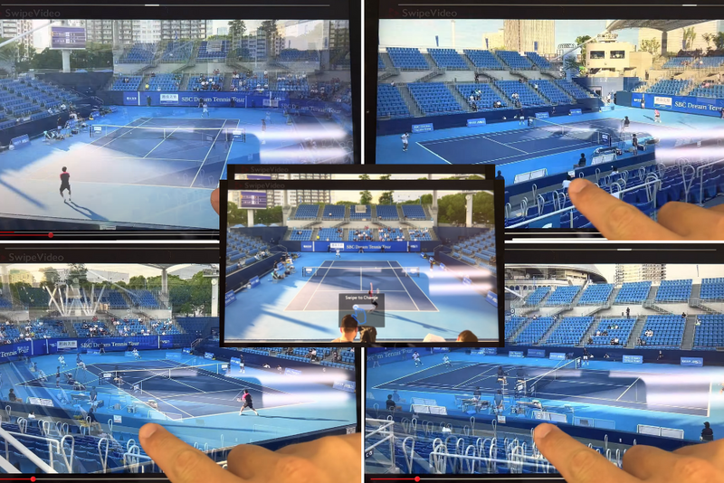 マルチアングル動画配信は世界各国で研究が進められているが、視聴者が自由に視点を変えられるタイプのものは限られる。データ容量が膨大になってしまうため技術的に難しく、視聴者が切り替えられるとしても、生配信や長い動画では不可能だった。だがSwipeVideoは、数々の特許技術によってそれを可能にした。しかもカメラの台数に制限がない。また視聴者側は、専用アプリをインストールする必要もなく、スマホ、タブレット、PCのブラウザーでURLにアクセスするだけで見ることができる。好きなタイミングで画面をスワイプすればアングルが切り替わるのだ。さらに、生配信中の映像を「巻き戻し機能」で少し前に戻り、別のアングルで見直すことも可能だ。