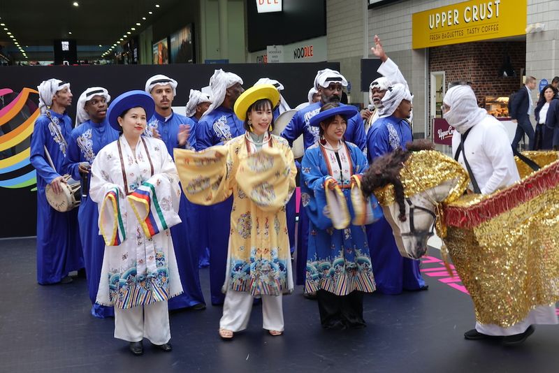 イベント会場となったのは、ロンドン東部に位置する「エクセルロンドン」。広大な床面積を持つ同施設フロアの大半を各国・各事業者の出展ブースが埋め尽くした。会場内の至る所でダンスや民族楽器の演奏、伝統料理の試食などが行われ、観光客気分で楽しめる。