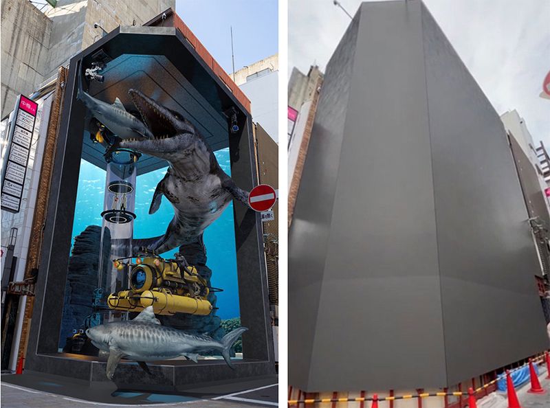 2021年、東京の新宿駅東口広場に建設されたクロス新宿ビルに大きな街頭ディスプレイ「ChromaVision 60」が登場し、巨大な3Dの猫がリアルに動き回ることで話題になった。宗右衛門町に出現した「MONSTER 3D VISION OSAKA」も、それに似た立体映像を映し出すLEDパネルだ。サイズは高さ14メートル、幅14.5メートル。幅はChromaVision 60も狭いものの、高さは圧倒的。また、ChromaVision 60の画素ピッチは6ミリなのに対して、MONSTER 3D VISION OSAKAは3.9ミリと高精細になっている。