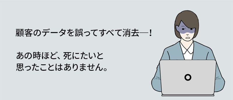 「私が入社2年目のことです。顧客のデータを扱っていたのですが、誤ってすべて消去してしまいました。いつもはしっかりと確認をするのですが、そのときはたまたま忙しくて確認を怠り、誤って消去を押してしまい、顧客のデータ1000件あまりが一瞬で消えてなくなりました」