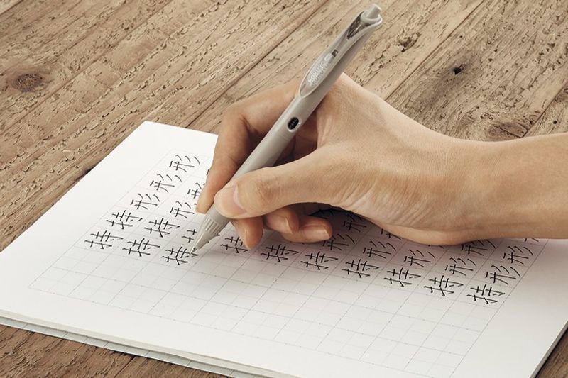コクヨの「ペン字練習帳」は、大人用のペン字練習専用ノート。オリジナル仕様の罫線は、20mmのマス目を3分割する位置にドットを配置。これにより、「へん」と「つくり」の比率を意識した、バランスの良い字を練習できるように工夫されている。