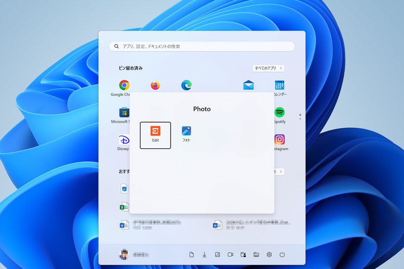 ピン留めするアプリは自分で指定でき、アプリのショートカットなどを右クリックし[スートにピン留めする]を選択すると、ピン留めエリアに表示されるようになる。ピン留めされたアプリは、ドラッグ&ドロップで並び順も変えられるので、使用頻度によってカスタマイズしよう。
