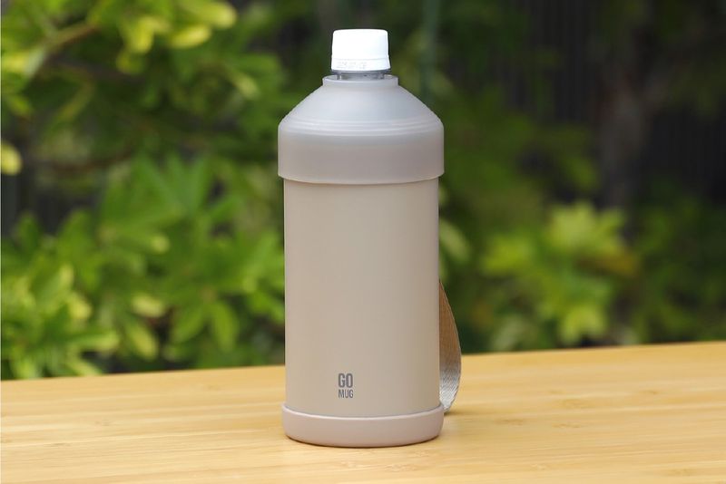 シービージャパンから発売された「BOT.GOMUG STRAP」は、500mlのペットボトルがそのまま入る保冷ステンレスホルダー。真空2層構造で飲み物の温度をキープしつつ、結露も防いでくれるため、テーブルが濡れてしまうこともないのが嬉しい。