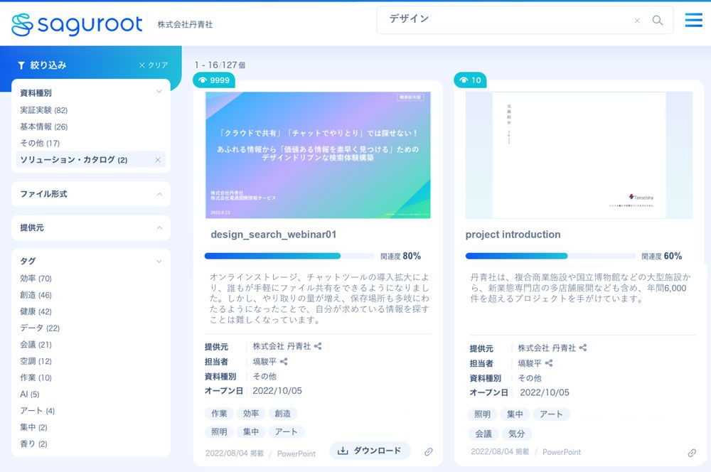 丹青社のUX設計と、日本マイクロソフトのAzure AIを活用したナレッジマネジメントツール。横断的な資料検索で、社内に眠る情報の活用を促進。また生成AIによる要約表示もでき、より効率的な検索体験を実現する。
