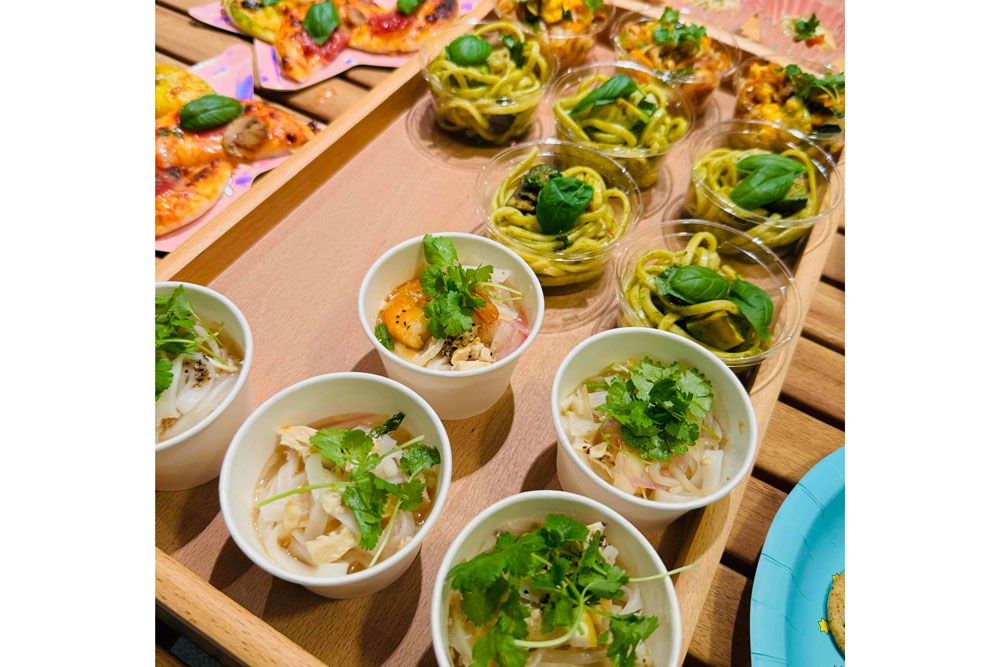 木質培地「グロウアース」を使用したオフィスでの植物栽培の実証実験。point0内で栽培したバジル等を使用した試食会を開催し、コミュニケーション活性化などの効果を確認した。