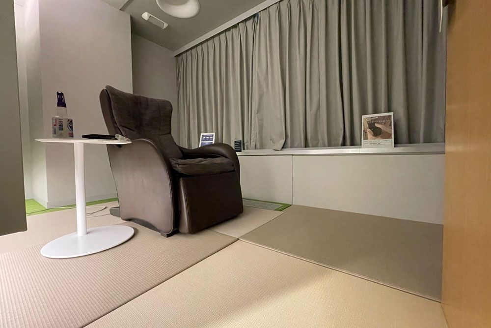 リラクゼーションルーム、および畳単体が心身の疲労度に及ぼす影響についての実証実験。畳の空間や足触りが、疲労度の軽減やリラックス効果に寄与することを確認した。