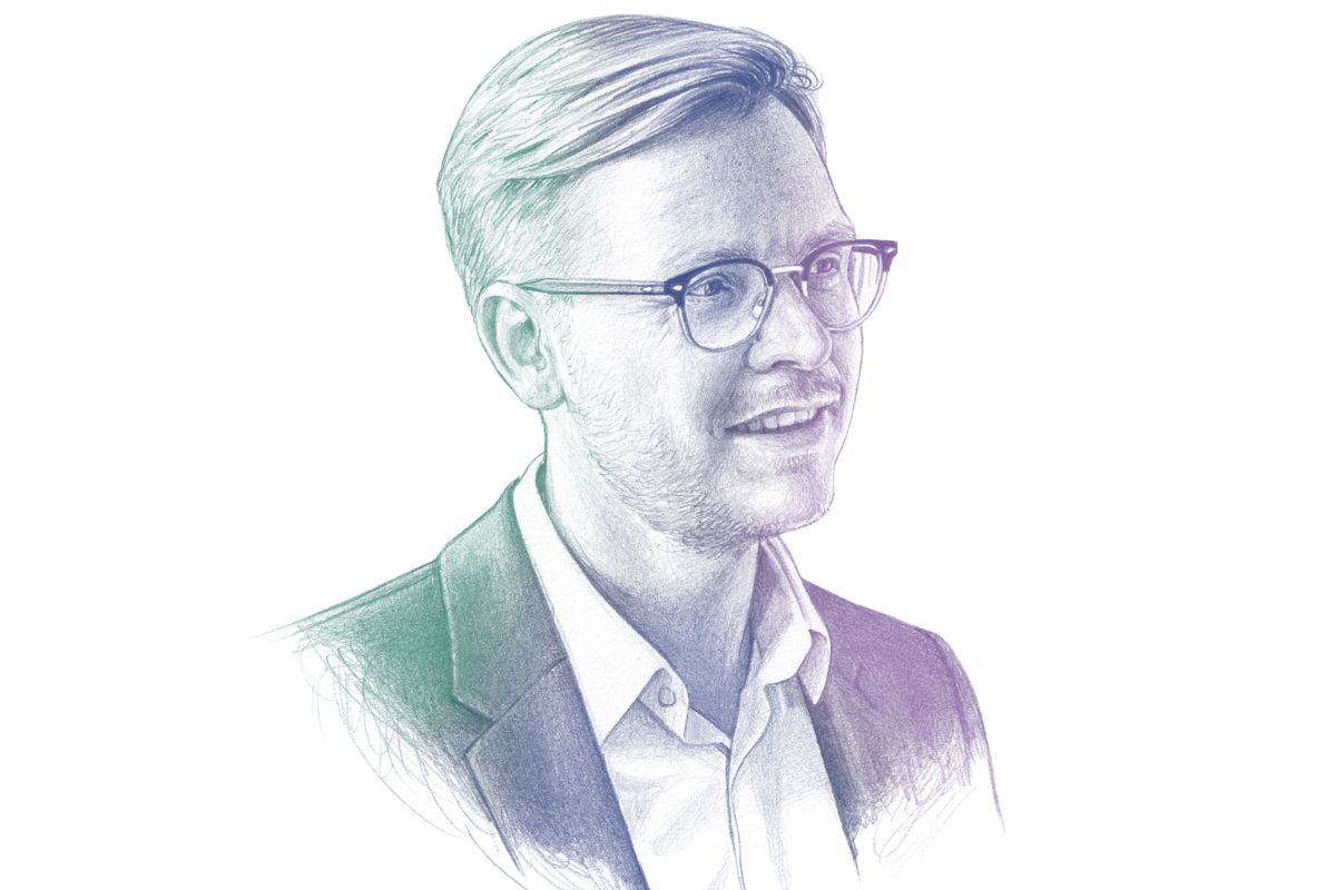 マルクス・ガブリエル|哲学者、ボン大学教授(イラスト=オリアナ・フェンウィック、元画像=ジャナ・デーネン)
