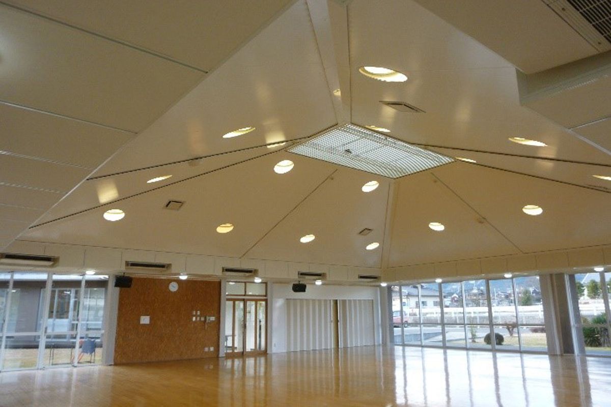 従来のボードをつる天井とは異なり、柔らかいシートを壁で引っ張る新しい工法による天井システム。一般的な天井と比べて重さは約40分の1、耐久性は約2倍。大面積に短期間で設置できる。震災時に建物が揺れると柔軟に変化し、天井が落下しにくくなる構造となっている。万が一落下しても、軽量なため被害を最小限に抑えることが可能。「過去の震災では、避難場所となる体育館などで天井が落下し、二次災害を引き起こしていた。安全性を重視した天井システムとして期待」(藤田)