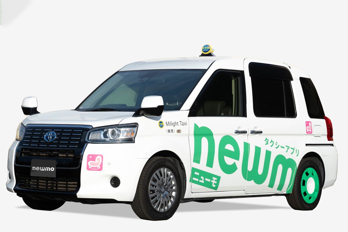 2024年4月に解禁された日本版ライドシェアや、従来型のタクシーサービスに加えて、タクシー配車アプリ、車両リースなどを提供。「大きく供給がひっ迫する日本の交通課題のなかで、旧来のソリューションとテクノロジーを組み合わせ、日本らしい新しいかたちのモビリティを提案し、社会問題を解決しようとしている」(高宮)。写真はnewmoの配車アプリで呼べるラッピングタクシー。