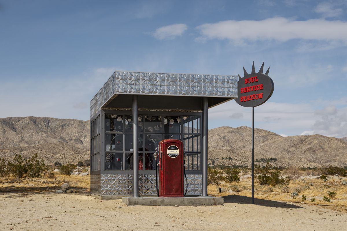 だが、今回のデザートXは、過去の4回をさらに上回るイベントになったといえるかもしれない。中でも興味深い作品の一つは、アリソン・サールの「Soul Service Station」だ。大恐慌時代の米西部にあったガソリンスタンドのようなこの作品に使用されているのは、再利用したブリキのタイルなど。