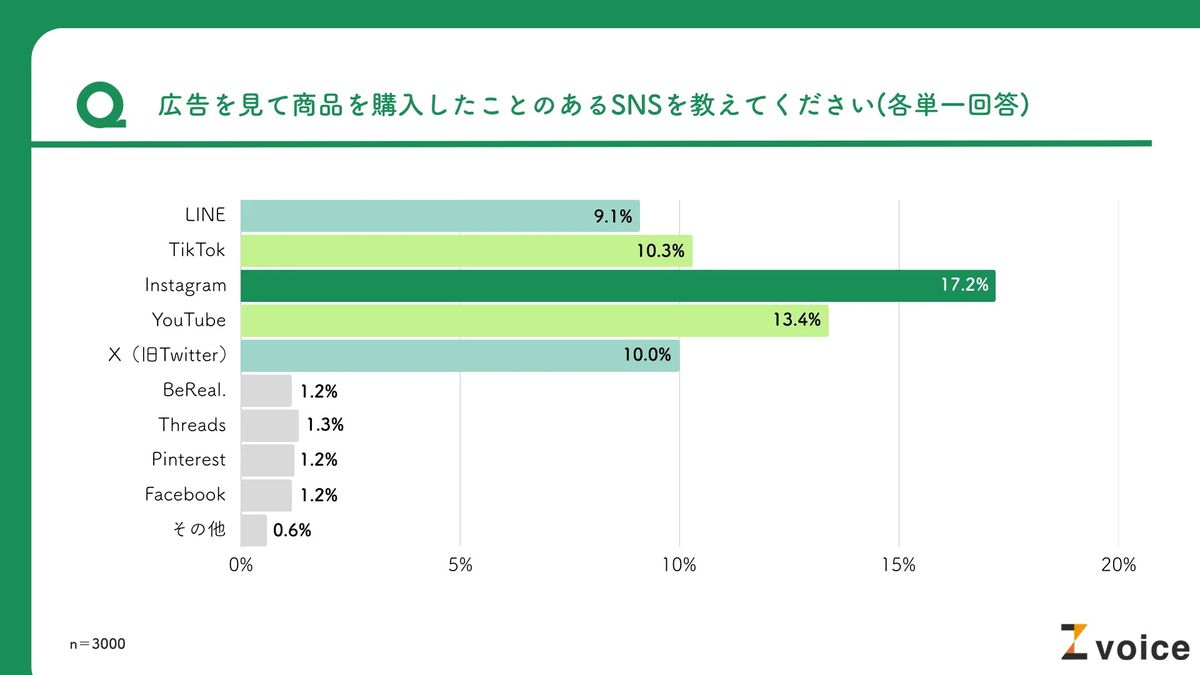 まず、どのSNSで広告を見たときに商品を購入したのか聞いたところ、「Instagram」が17.2%でトップ。ついで、「YouTube」の13.4%、「TikTok」の10.3%と続いている。InstagramやTikTokは投稿の合間に広告が挟まっているが、YouTubeは動画の合間に挟まっており、筆者は邪魔だと感じるが、そんなYouTubeでも購買につながっているZ世代を見ると、挟まれる広告を「邪魔なもの」とは感じていない層があるのかもしれない。