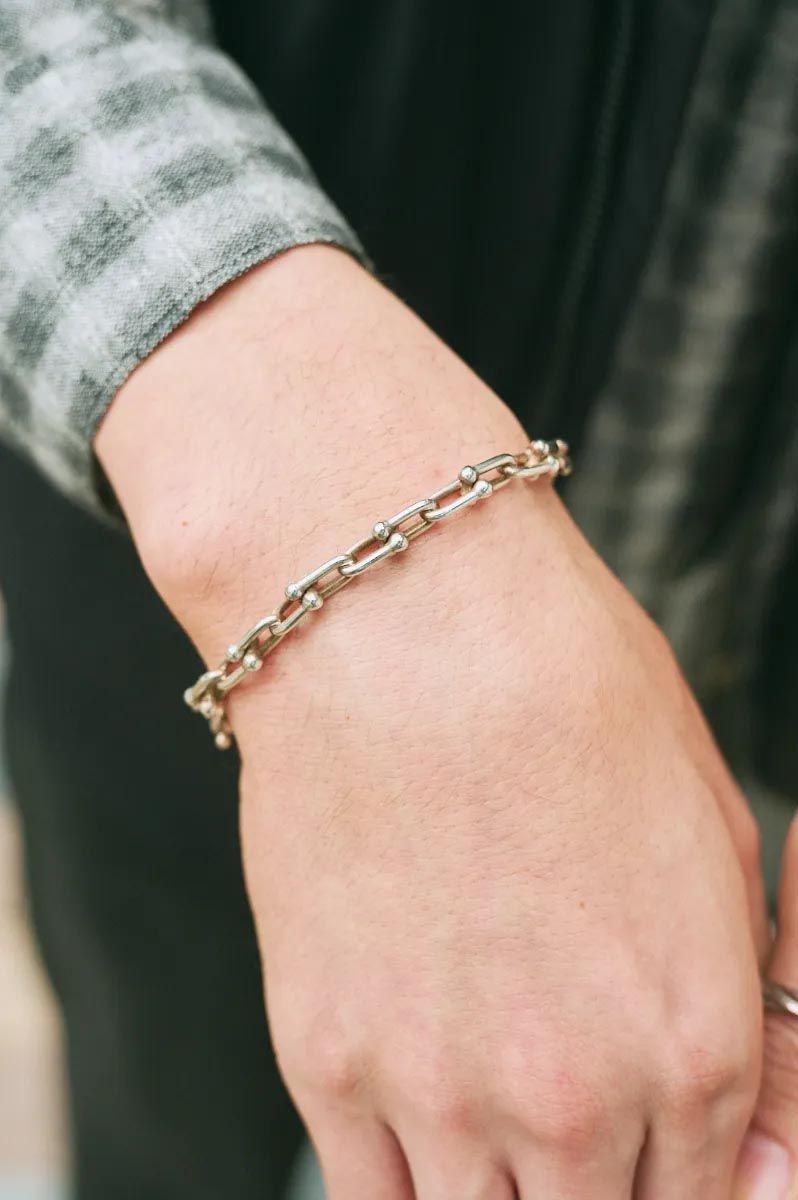 ベスト=アークテリクス シャツ=サンフラワー デニム=古着 シューズ=クロケットアンドジョーンズ 帽子=シュプリーム バッグ=ジルサンダー ブレスレット、リング=ともにティファニー リング2=メゾンマルジェラ