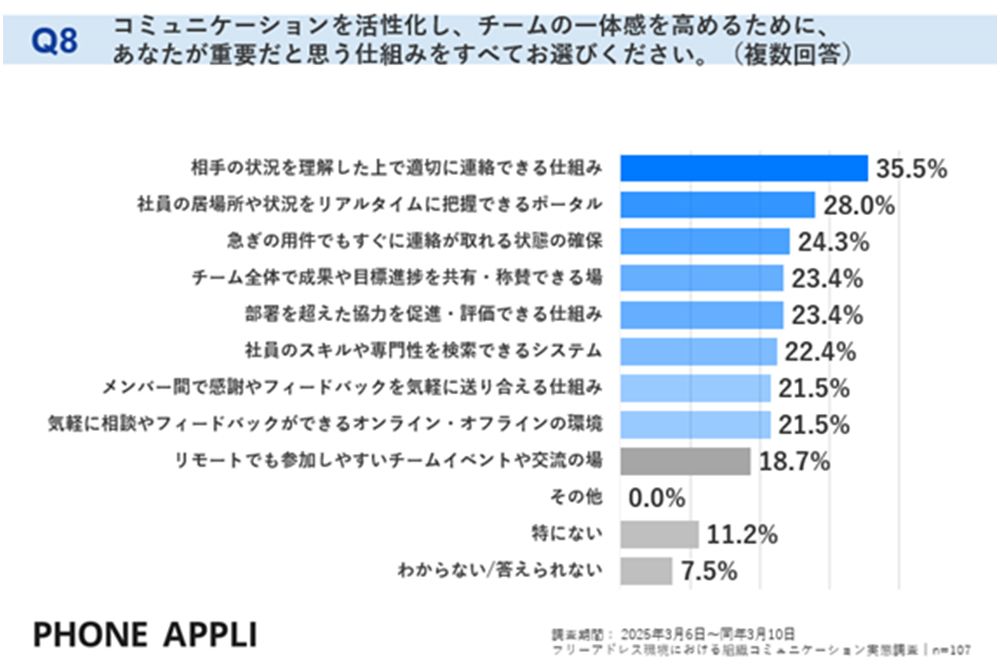 重要だと思う対策を聞くと、相手の状況を理解したうえで適切に連絡できる仕組み、社員の居場所や状況をリアルタイムに把握できるポータル、すぐに連絡がとれる状態の確保などがあげられた。