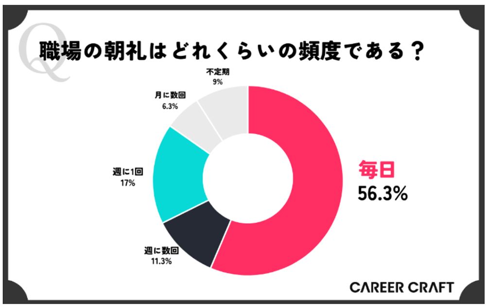 WEBシステムの受託開発などを行うセルバは、朝礼を実施している企業に勤める300人を対象にアンケート調査を行ったところ、朝礼が毎日あるという企業は6割近くあり、そのうちの約2割がスピーチを行っていた。
