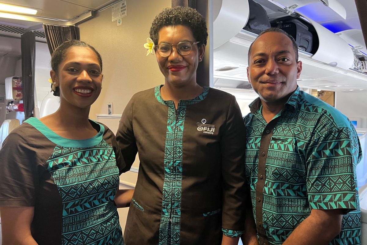 成田空港から直行便で9時間、2023年にフィジーエアウェイズによる直行便が復活したことで、リゾートデスティネーションとして注目されているフィジー。機内に乗り込むと、伝統衣装に身を包んだスタッフが「ブラ!(こんにちは)」と明るく迎えてくれ、その瞬間からフィジーの体験が始まっている。