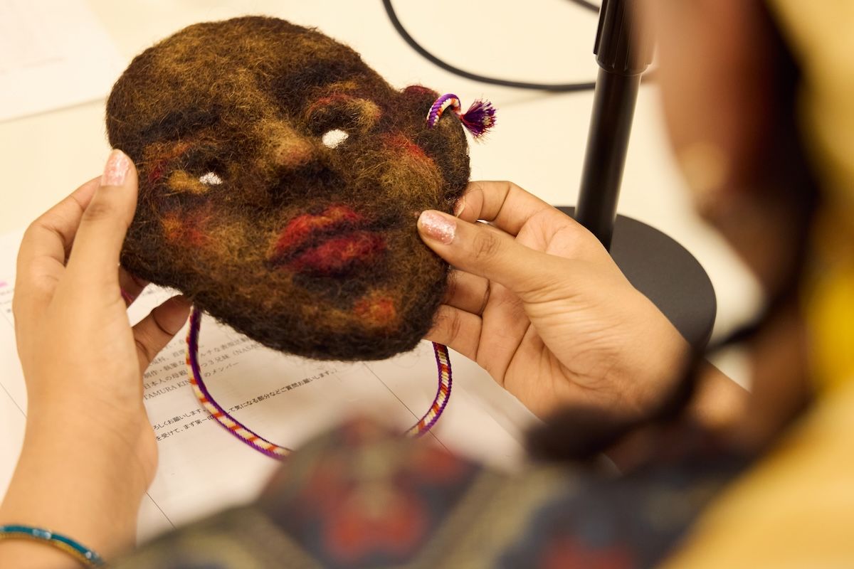 でも、縮れ毛でもいいじゃないかって。このお面はボブ・マーリーやレゲエの文化とも通じていくものだと思っています。そこに日本文化の組紐も取り入れて、能面みたいな雰囲気も持たせました。