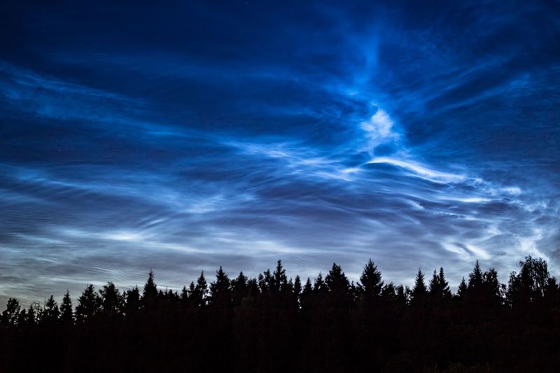 夜光雲は地球で最も高高度に発生する雲だ。大気圏を構成する中間圏と呼ばれる大気層の中でも高度約75~85kmの上部領域、地球の空と宇宙の境目に形成される。
