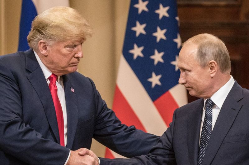 ドナルド・トランプ米大統領とロシアのウラジーミル・プーチン大統領。2018年7月16日、フィンランド・ヘルシンキにて(Chris McGrath/Getty Images)