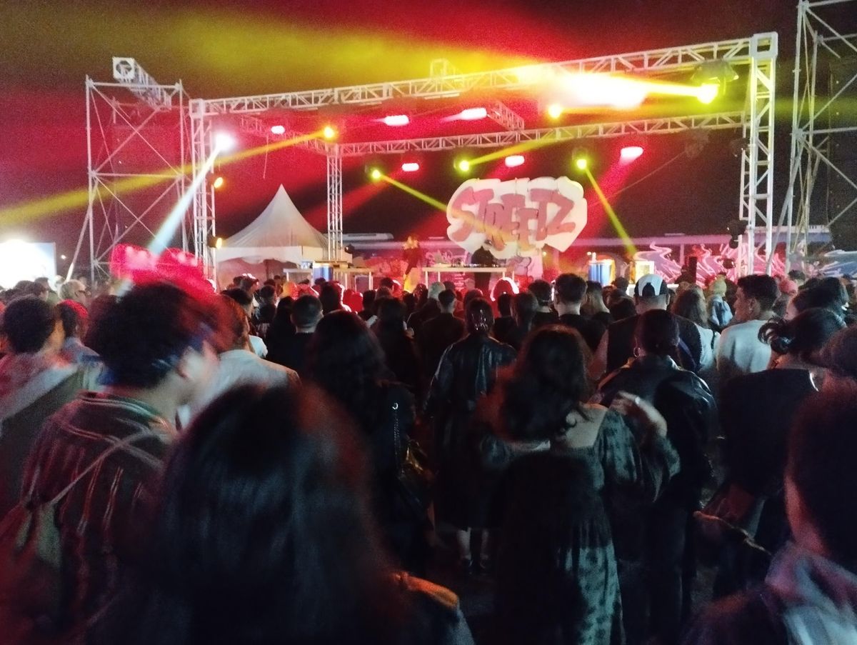 重低音が轟くハードロック、シンセサイザーの電子音と天空に向けて発射されるビームが交錯するステージ、DJミュージックに合わせて身をくねらせて踊る若い男女ですし詰め状態の特設クラブもあった。アコースティックギターを弾きながら歌う、地元のガールズポップのミニライブの曲も印象に残った。