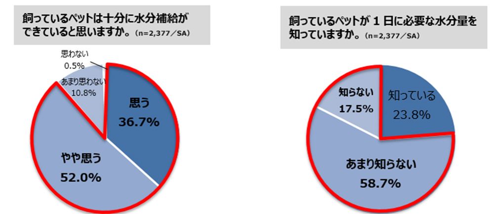 プレミアムウォーターは、同社のウォーターサーバーを契約している20〜60代の2377人を対象に「ペットの熱中症や脱水症に関する調査」を実施した。それによると、8割以上の人がペットの熱中症や脱水症を不安に思っていることがわかった。