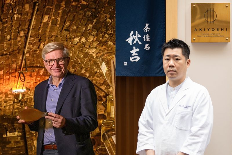 Champagne Salonとパリのレストラン・ブラン佐藤氏が提案する料理を記した前回記事に続き、今回は、パリで茶懐石を供す秋吉氏が、最上のロゼ・シャンパーニュであるルイ・ロデレールの「クリスタル・ロゼ」の新ヴィンテージ2015に合わせて提案する料理を、醸造家の解説とともに、紹介したい。