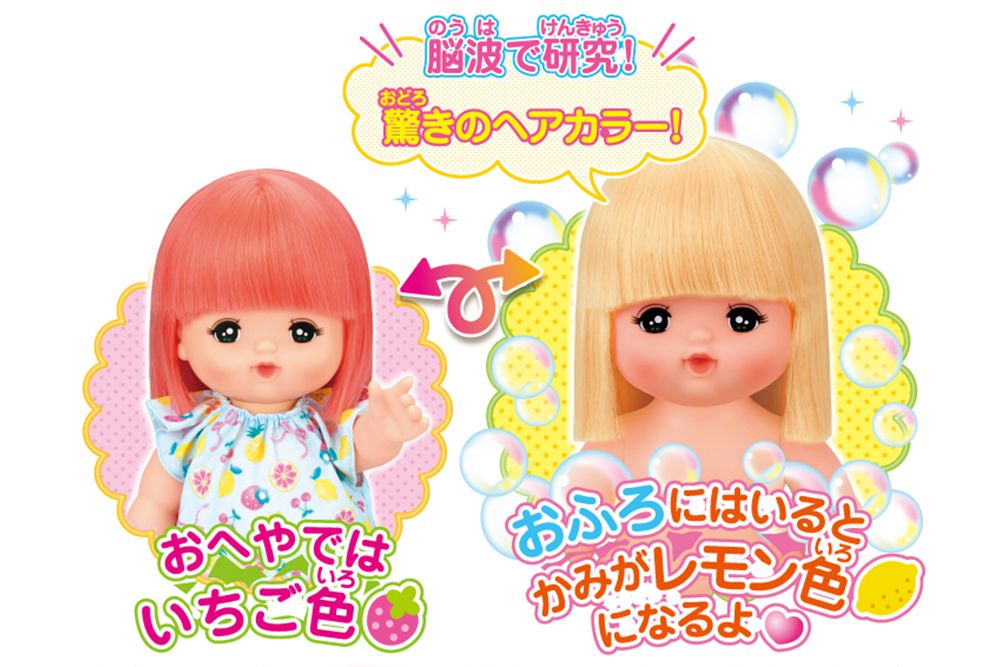 赤ちゃんから幼児のお世話が体験できるパイロットコーポレーション(パイロット)の知育玩具「メルちゃん」に、「フルーツだいすき♡いちごのおふろセット」が新たに加わる。このメルちゃんは、お風呂に入れると髪がいちご色からレモン色に変わる。じつはこれには、脳波解析によって得られた、子どもの感情分化を促す効果があるという。