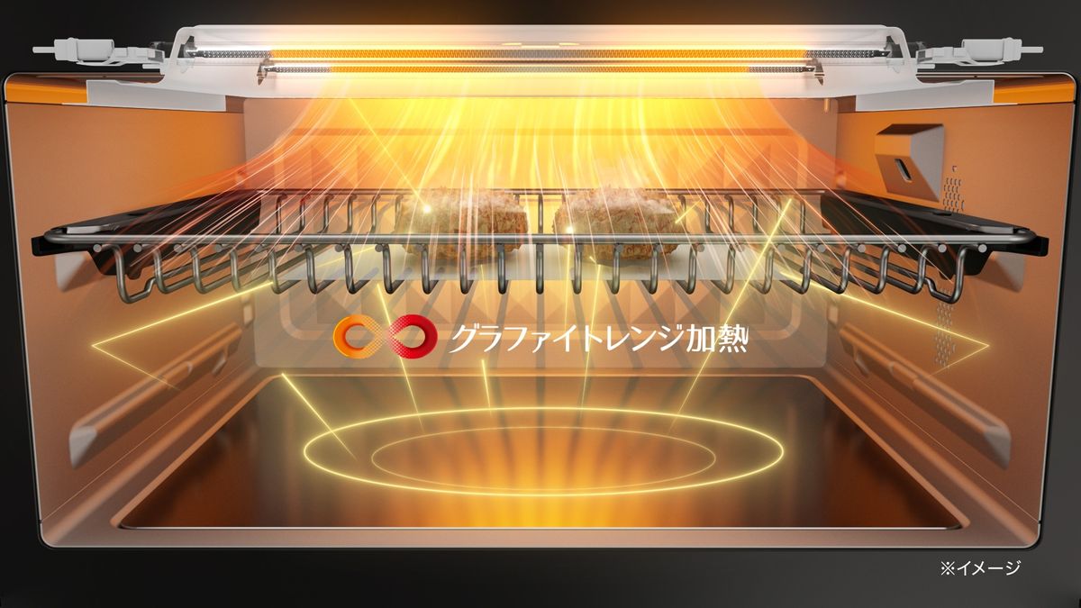 そんななか、暖房器具やトースターで知られる「アラジン(Aladdin)」から、ブランド初となるオーブンレンジ「アラジン グラファイトオーブンレンジ」が登場。最大の特長は、わずか0.2秒で瞬間発熱する「グラファイトヒータ」とマイクロ波によるレンジ加熱を組み合わせた新技術「グラファイトレンジ加熱」。味だけでなく、食感にもこだわった調理が可能だ。