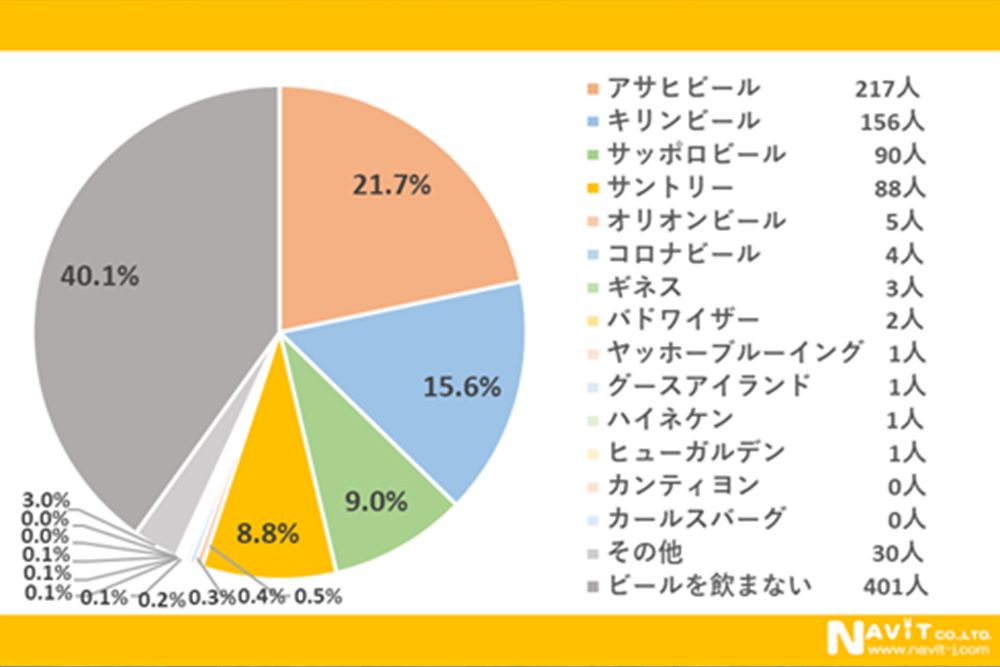 アンケートサービス「1000人アンケート」などを提供するナビット(データ活用なう)は、全国の主婦を中心とした20〜80代の男女1000人を対象にビールに関する調査を実施した。それによると、ビールが好きだと答えた人の割合は5割をやや超える。お酒を飲まない人も含まれることを考えれば、5割の支持率は「すごいこと」だとナビットは指摘する。