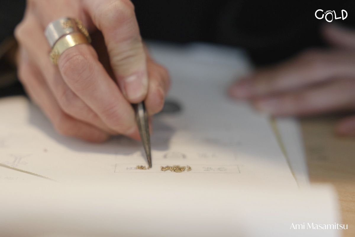 「その材料費の高さから、作る側としても敷居が高く、はじめの一歩が重かった。しかし、実際に扱いはじめてみると、加工のしやすさや、アレルギー反応のおきづらさ、ケアしやすさなど、なぜこんなに価値があるのかを改めて実感できた。そして、置いておくだけで高揚感がある。人をそんな気にさせられるのは金しかないと思った」