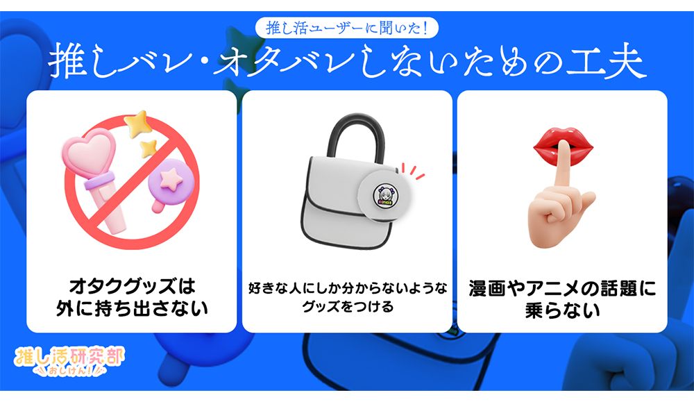 推し活にはまっている人、アニメやアイドルのオタクを自認する人たちの多くはオープンにオタク人生を楽しんでいるのだが、世間の風はときに冷たい。そんなオタクさんたちの、切ないながらも微笑ましい、人との距離感の保ち方、オタクがバレないための工夫、相手がオタクだと見抜くポイントがアンケート調査で明らかになった。