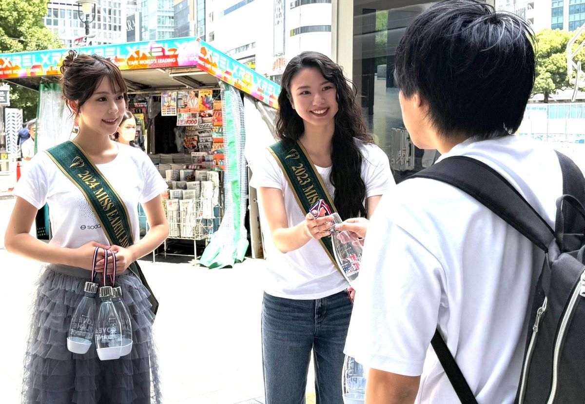 2025年6月5日、国連環境計画(UNEP)が世界環境デーに掲げる「プラスチック汚染をなくそう」に賛同し、ソーダストリームは渋谷の街をジャックした。1日あたり200万人以上が行き交う都市の中心で、繰り返し使えるマイボトルのサンプリングを実施。2023年・2024年のミス・アース・ジャパン日本代表が配布に参加し、「炭酸水をマイボトルで持ち歩く」という新たな発想を通じて、若年層にも環境問題への関心を呼びかけた。