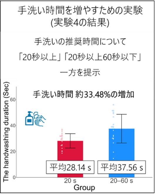 研究チームはそれを検証すべく、1199人を対象に7つの実験を行った。代表的なものが、ドライブシミュレーターを使った制限速度の実験と、手洗いの時間に関する実験だ。手洗いは、「20秒以上」と示すよりも「20 - 60秒」と示す方が手洗い時間が長くなるという仮説の実証だ。