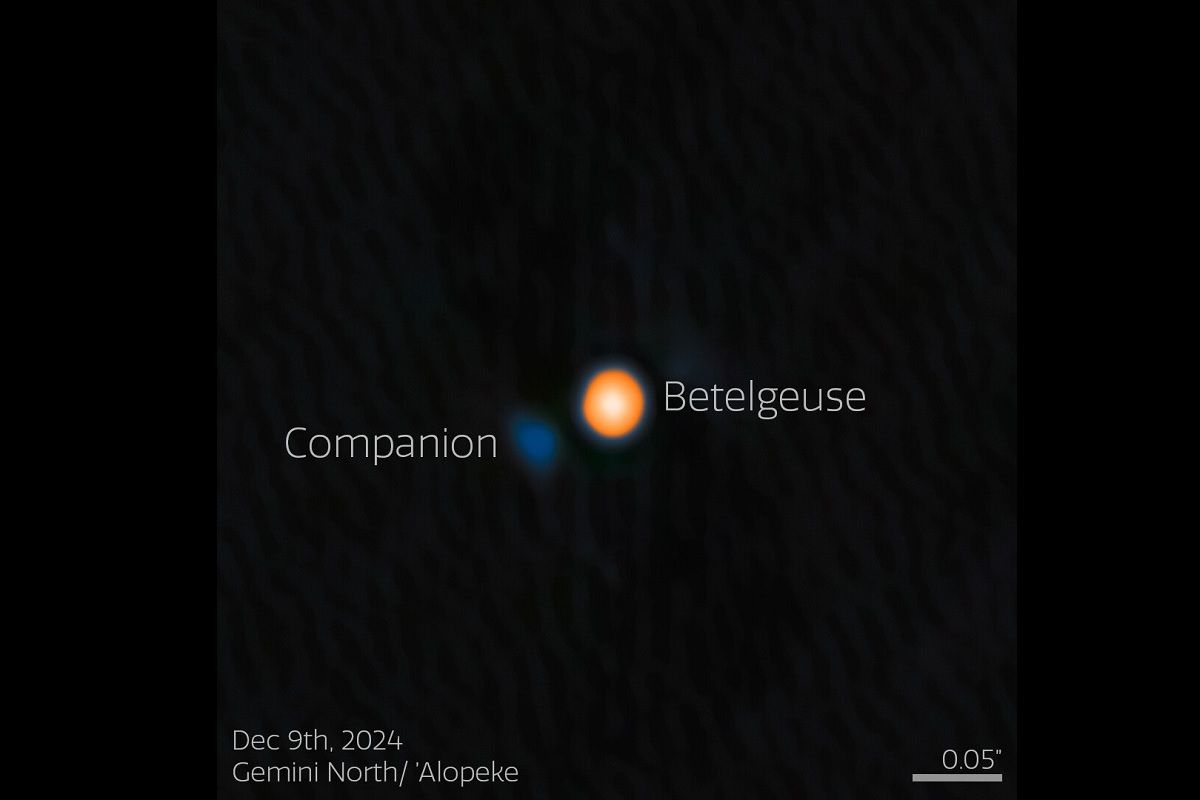 伴星は、ジェミニ北望遠鏡に搭載されたスペックル撮像装置アロペケ(Alopeke)を用いて発見された。スペックルは、露光を非常に短時間で行うことで地球の大気の揺らぎによる影響を最小限に抑えて高分解能を実現する天体撮像技術だ。ベテルギウスよりも可視光域で6等級暗い伴星は、青白い色をした若い星で、ベテルギウスからわずか4天文単位(AU、太陽地球間の距離)離れた軌道を周回している。この軌道は、赤色超巨星の外層大気の範囲内に十分収まっている。