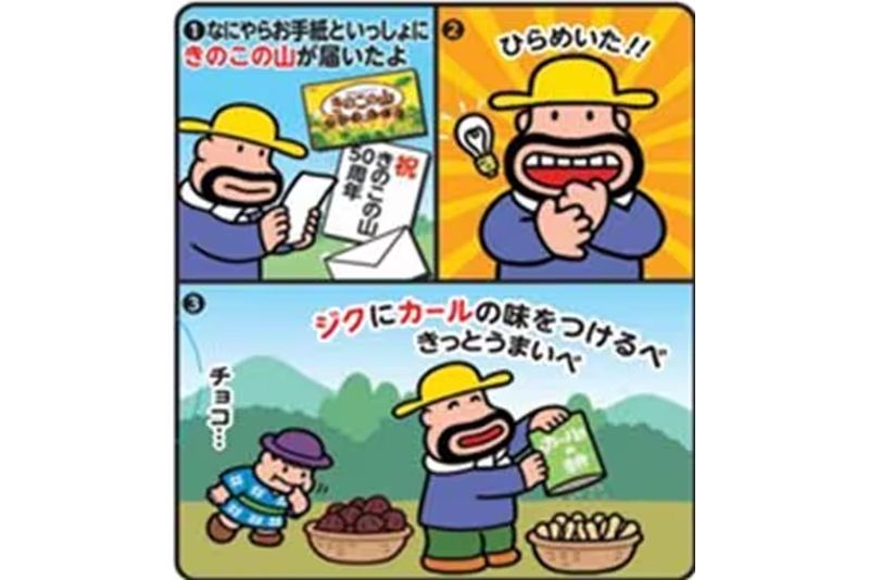 カールの東日本撤退を惜しむ人は多かっただろう。だが、その理由は売り上げの不振。カール愛好家なら、惜しむ前にせっせとカールを食べていればよかったのだと、後悔しても遅い。だがついに、カールおじさんが東日本に帰ってくる。今年は「きのこの山」の発売50周年ということで、カールおじさんがお祝いの気持ちを込めて、きのこの山の「ジク」にカールチーズあじのシーズニングをかけた、「サクサクとした軽い食感で、ポイポイ食べやすい」という記念コラボ商品を開発したというのだ。