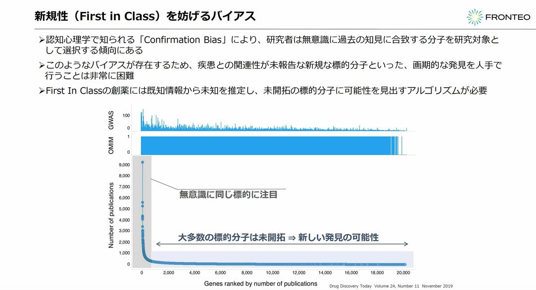 研究者は経験を持つだけに、研究対象となる遺伝子や疾患に偏りが生まれる傾向が強い。無意識のうちに研究対象から外しがちな「怪しいとは思えない」対象が生まれる、いわゆる認知バイアスの影響が大きいのだ。