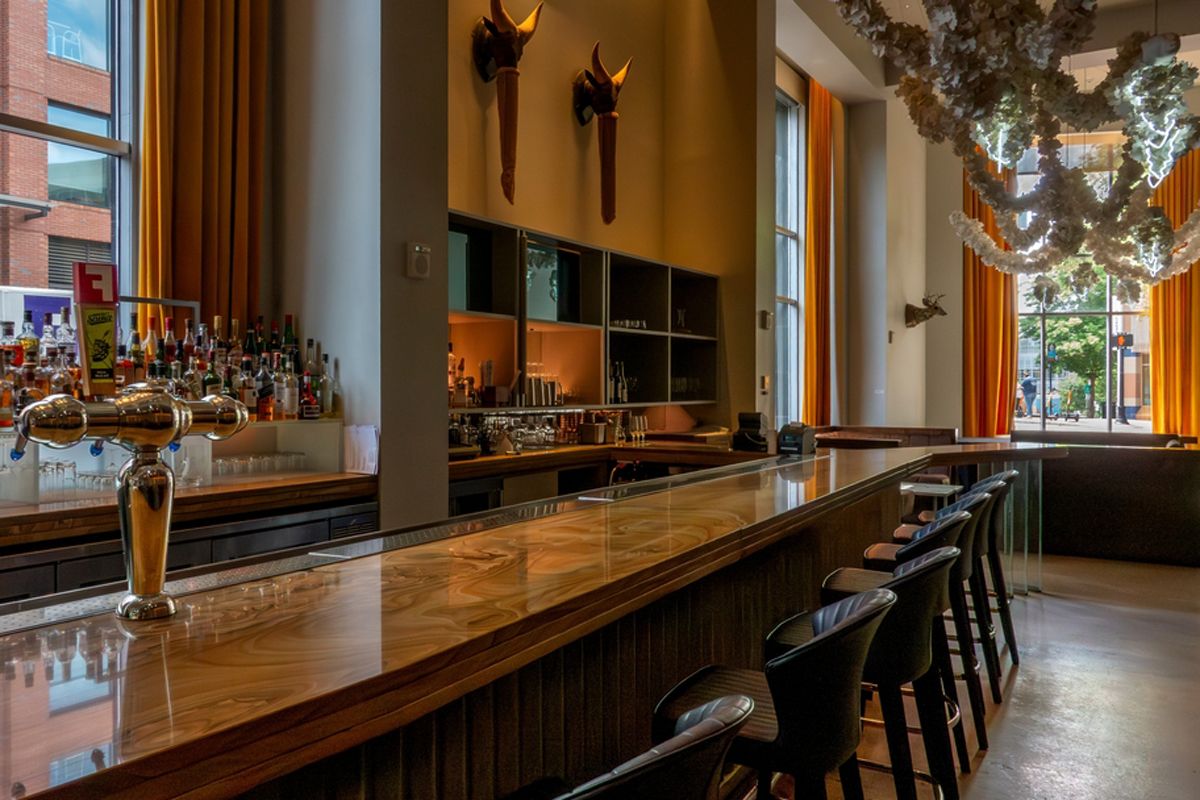 ノースカロライナ州ダーラムにある21c Museum Hotelのラウンジ(Brian Logan Photography / Shutterstock.com)