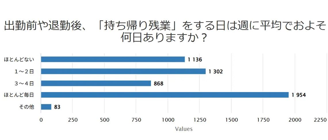 当然、家に仕事を持ち帰ることになる。4割に近い教員がほとんど毎日「持ち帰り残業」をしている。