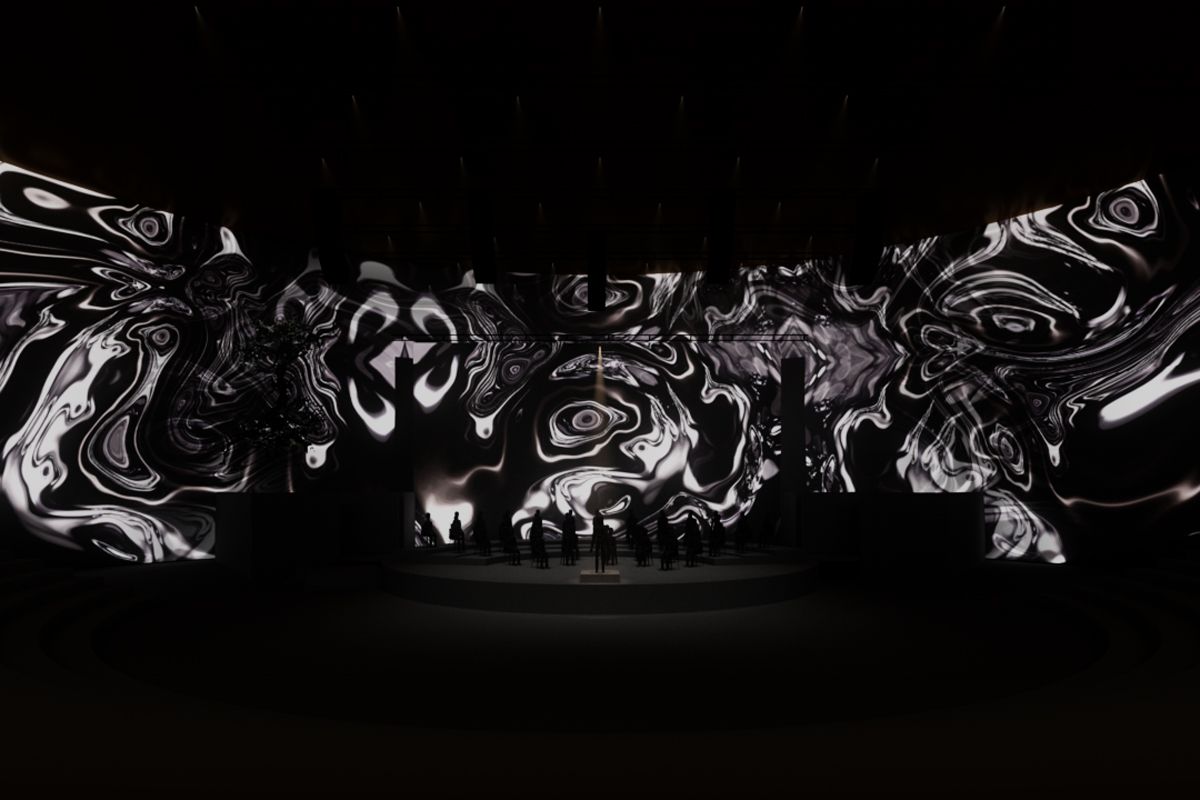 オーケストラに、能や狂言、AI生成の映像が交わり、耳だけではなく、全身で音を感じる舞台へ。ここでは、音と映像、古典と未来、人と自然……その境界は、ぬるぬると掴みどころがない。