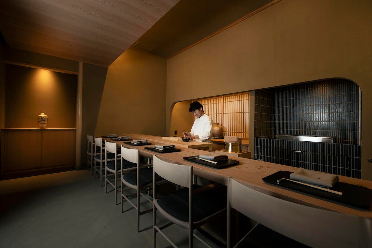健康長寿をテーマとするラグジュアリーな複合施設「THE HUNDRED ロンジェビティ ハウス」の最上階に、2024年11月にオープンした話題の新店。国内外の食通が足しげく通うオーベルジュ「徳山鮓」(滋賀)の徳山浩明が監修する発酵料理を核に、佐藤均料理長が全国から選りすぐった旬の食材をかけあわせ、まさに「身体が喜ぶ」と感じさせる健康的な美食を追求する。