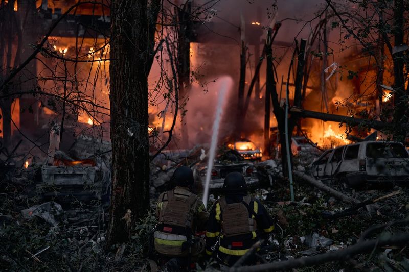 破壊された集合住宅、燃え上がる建物、地下シェルターに身を寄せる子どもたち──。写真や映像自体が状況を物語っている。ロシアはウクライナの民間人を狙った容赦ないテロ戦争を行っており、ドローンとミサイルによる絶え間ない攻撃でウクライナの士気を打ち砕こうとしている。だが、ウクライナは抵抗している。