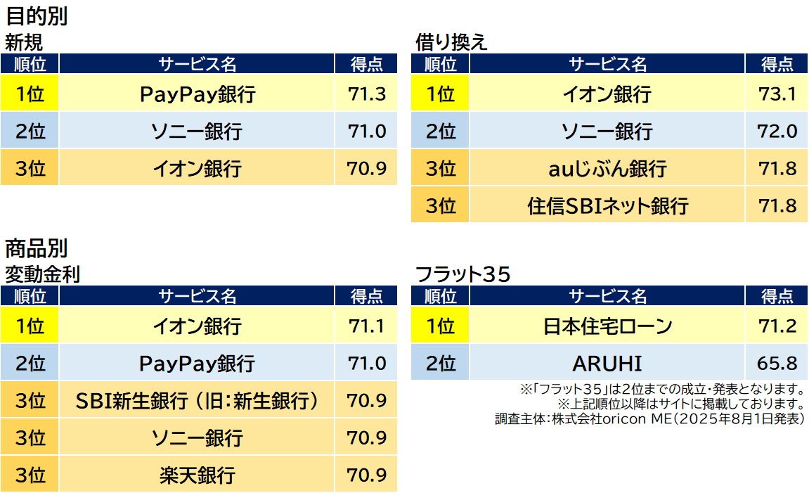 出典;オリコン顧客満足度調査「住宅ローン」より
